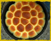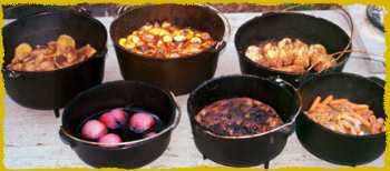 Lots of the dutch oven cooking that goes on is done using charcoal briquettes. This makes it easier to estimate temperatures which results in better meals. All the cooking in dutch ovens that I've done has been camp cooking using real wood coals and I've been able to consistently turn out good food. My page about cooking temperatures discusses this more, but the important thing is to be able to estimate your oven temperature to prevent burning and ensure complete cooking.
